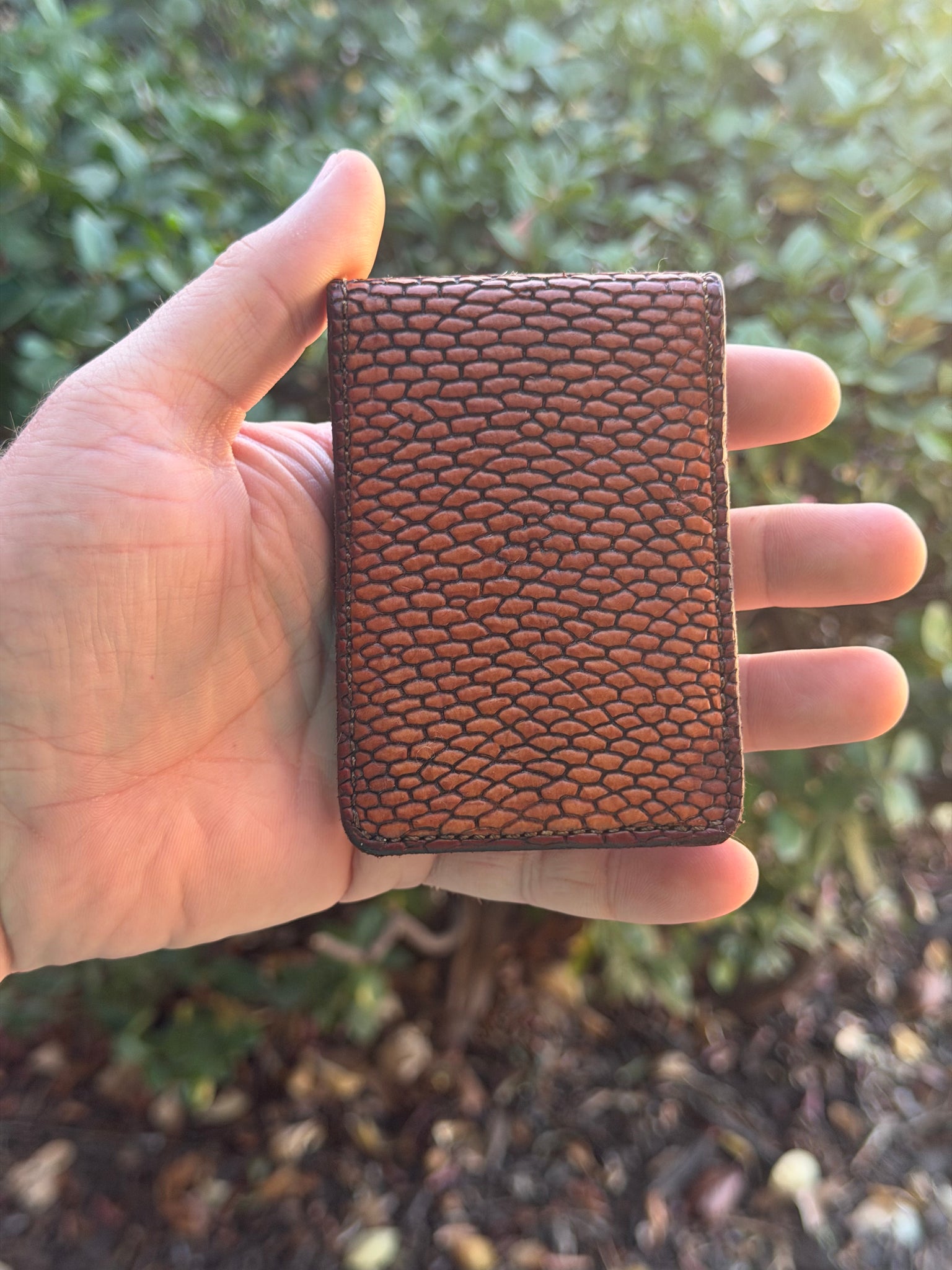 Beaver tail is known for its durability and unique texture, and over time it will form perfectly to your pocket and develop character with everyday carry. Thoughtfully minimalistic, every cut and stitch is made to save as much size and thickness as possible while still giving you solid, dependable function.
