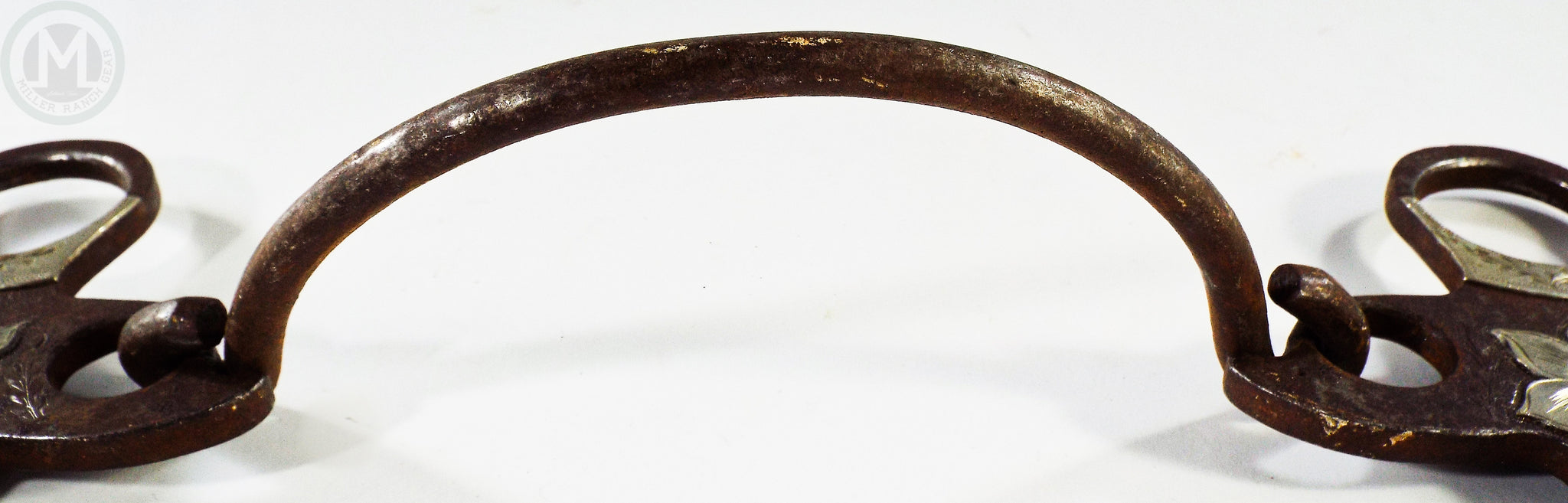 This is a metal nose mechanical hackamore bit made by Stephen White out of Plainview, Tx. It is a copy of an old J.R McChesney. This is the fifth bit that Stephen has ever made. The shanks are mounted with engraved silver and brass. This is a really cool and unique bit.