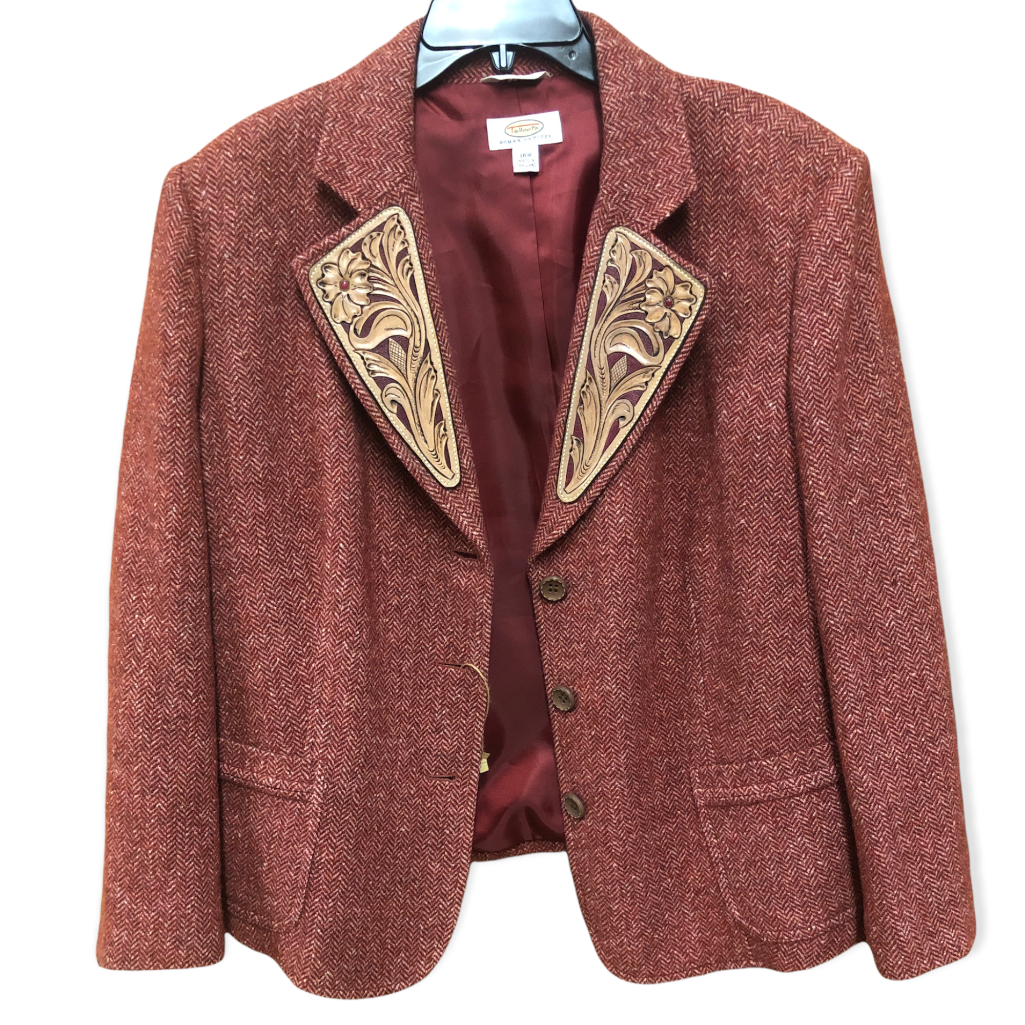 Hand tooled leather lapels